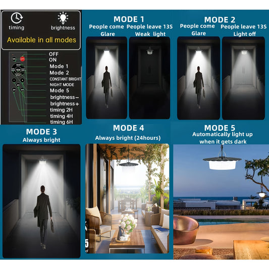 1 Pack Solar Pendant Light - 244 LED High-Intensity, Waterproof & Remote Controlled - Ultimate Outdoor Lighting for Sheds, Camping, Gazebo, Patio, Tent - Energy-Saving & All-Round Glow