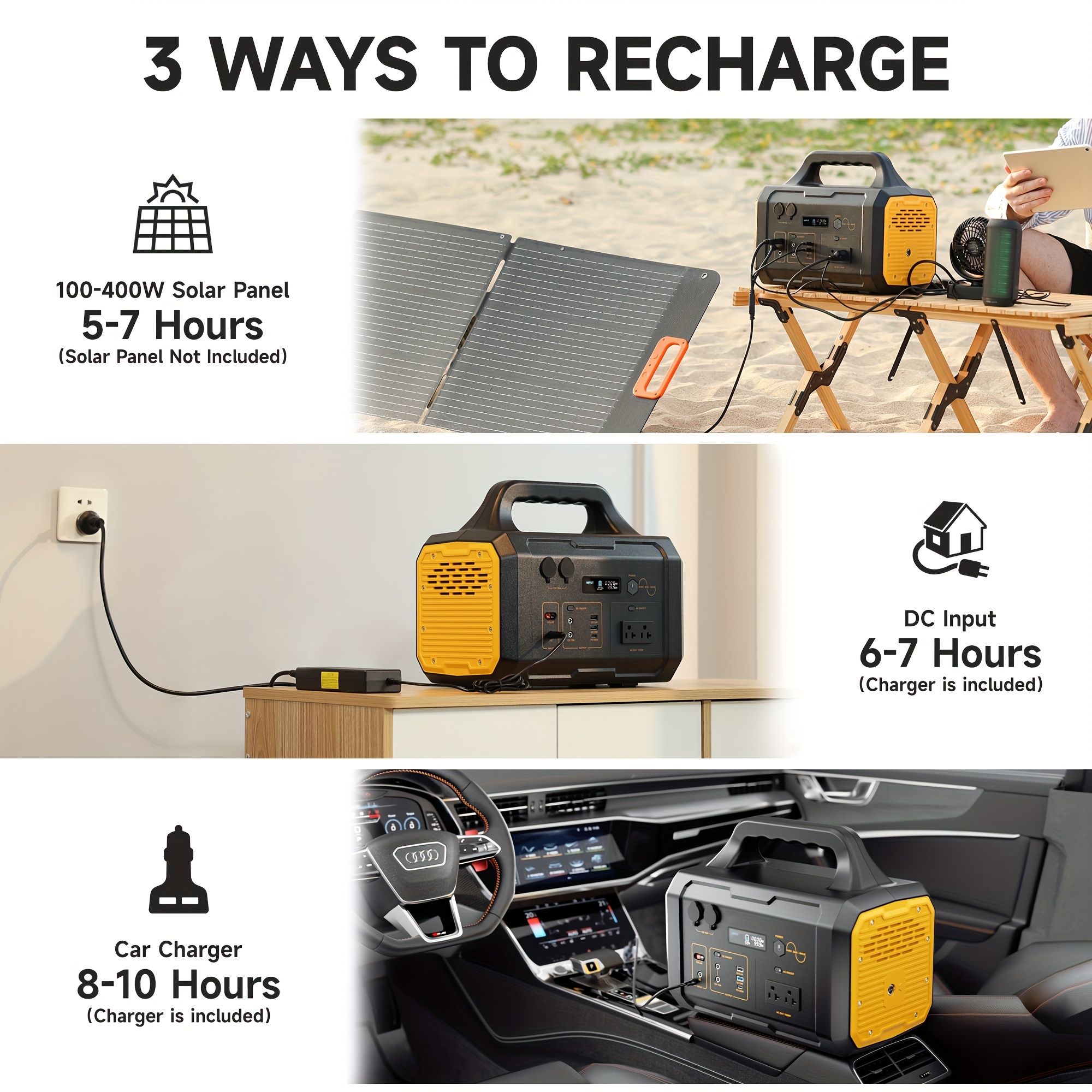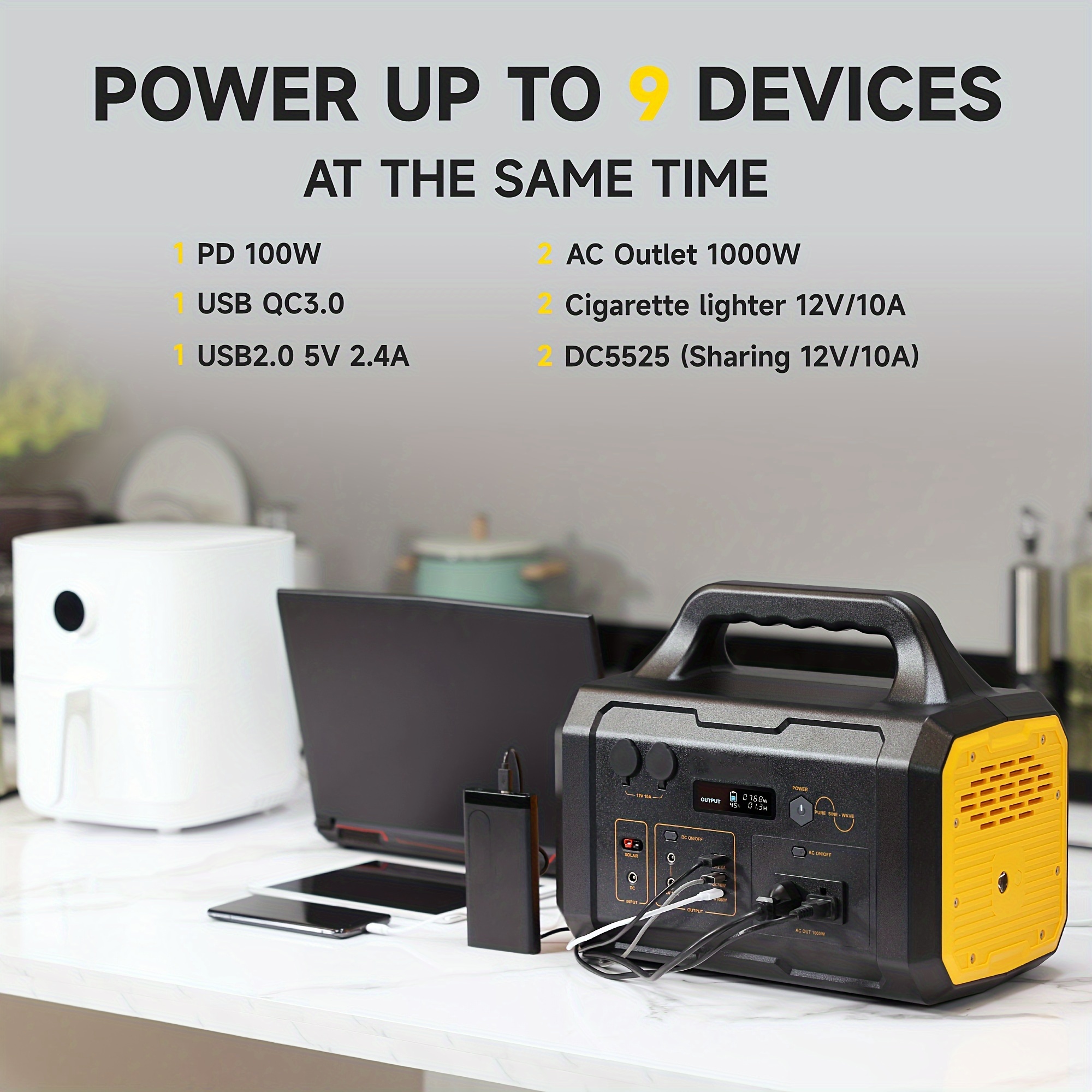 1000W Portable Power Station FlashFish 293Wh-1075Wh With AC Outlet/2 DC Ports/3 USB Ports Backup Battery/Power Supply For Outdoor Trip Camping Emergency