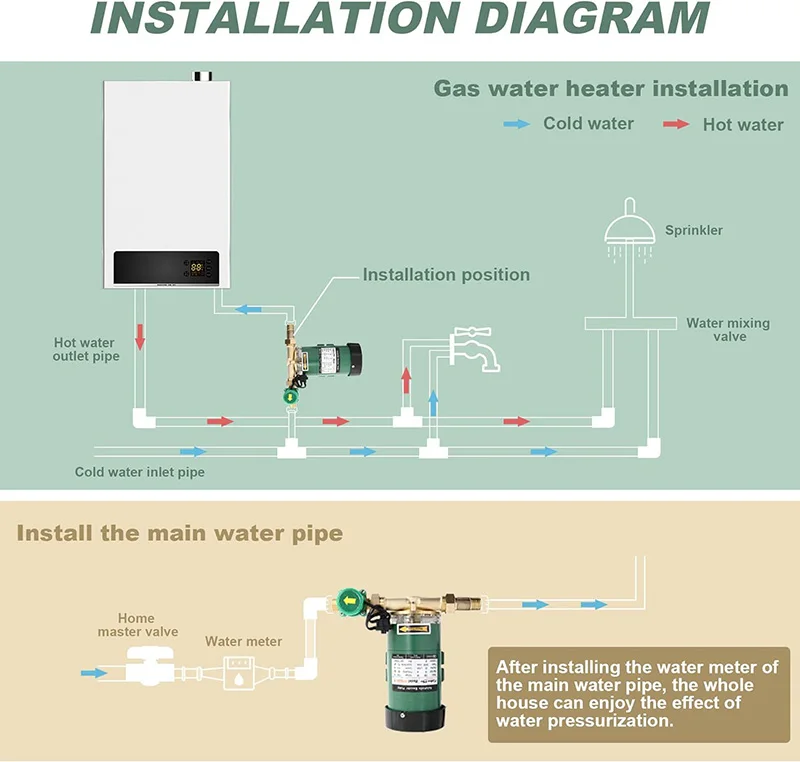 This pump solves the problem of inadequate water causing no lit Fire because when the tap water is of low pressure , the pump can boost pressure . It can also boost pressure for solar water heaters , boost pressure and circulate water for industrial equipment , and increase oxygen for rearing ponds or fish tanks