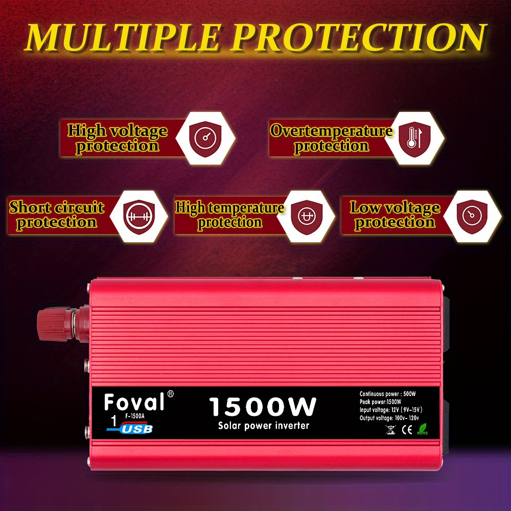1500W Peak Car Power Inverter Converter - DC 12V to AC 110V/120V with USB Port - High-Power, Smooth Conversion, Portable for Travel Needs