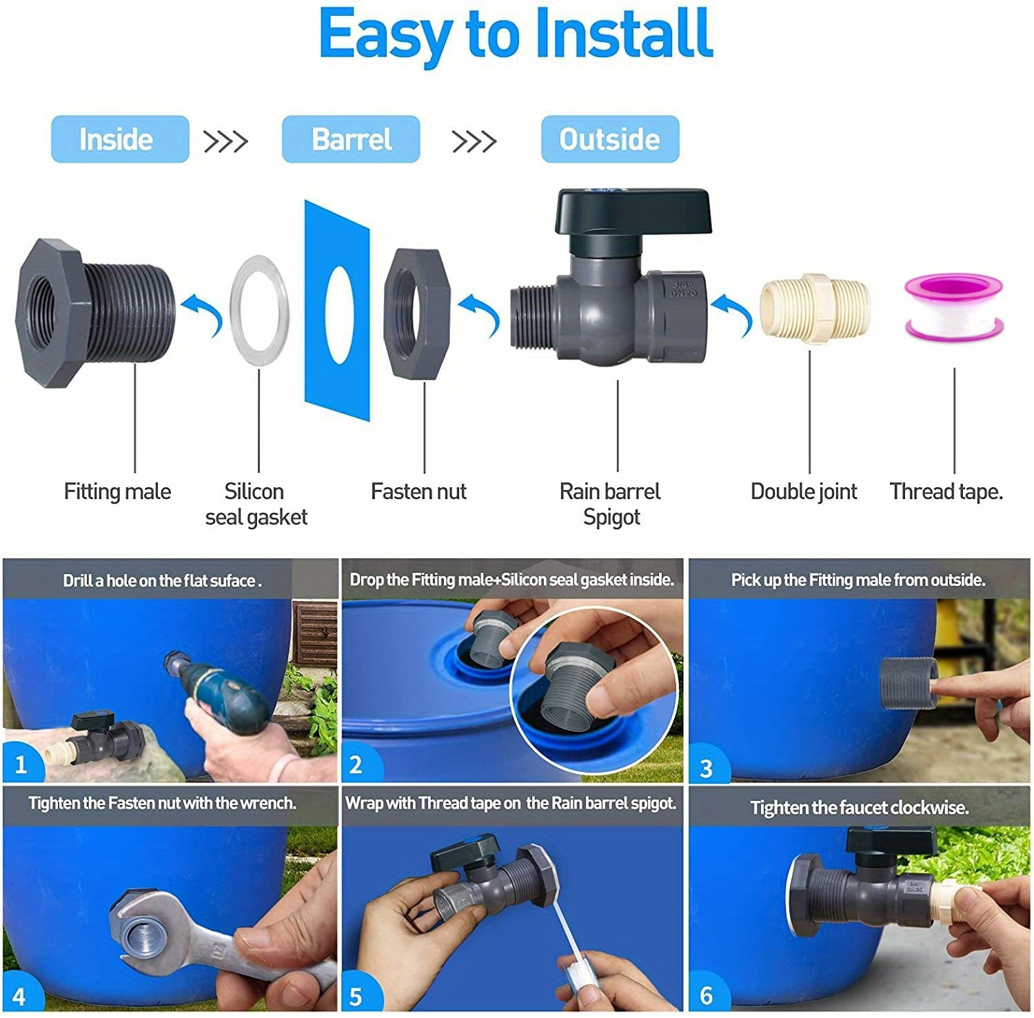 1pc Classic Style Large Capacity PVC Water Barrel Spigot Kit - Universal Thread Connection, Wall Mountable, Includes Installation Hardware, Durable Plastic Material, Perfect for Garden and Rain Barrel Water Storage