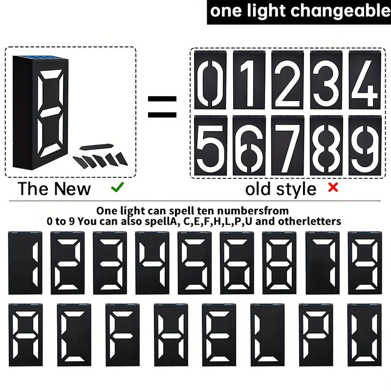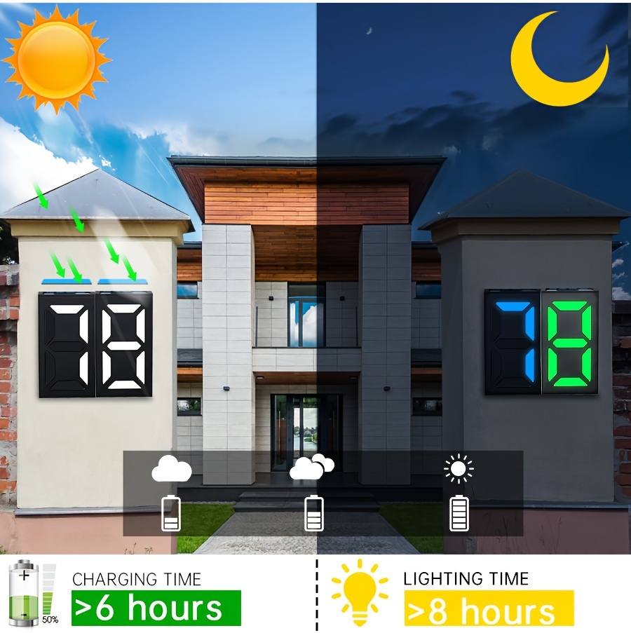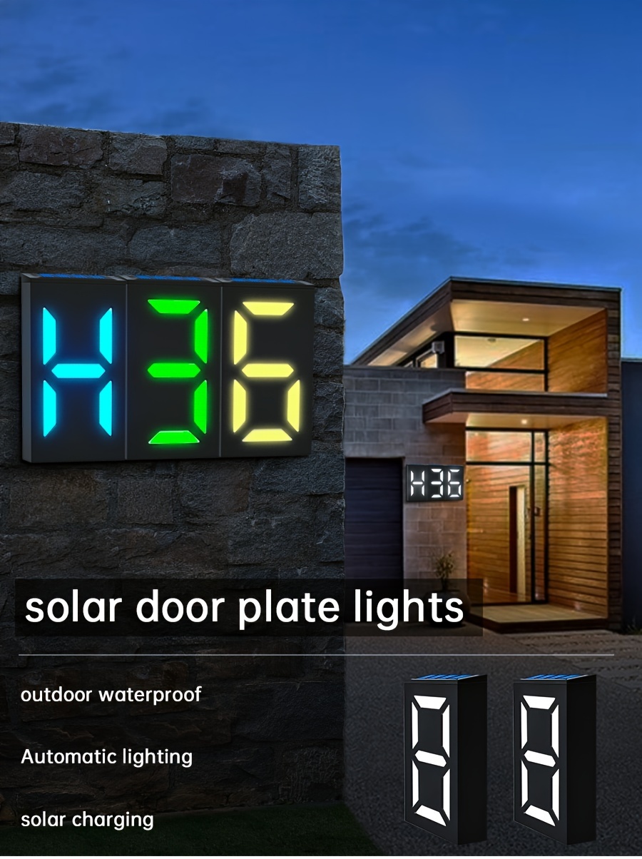 1pc Stylish Solar LED House Number Sign - Durable, Waterproof & Customizable - Bright Colorful LED Illumination for Easy Wall Mounting