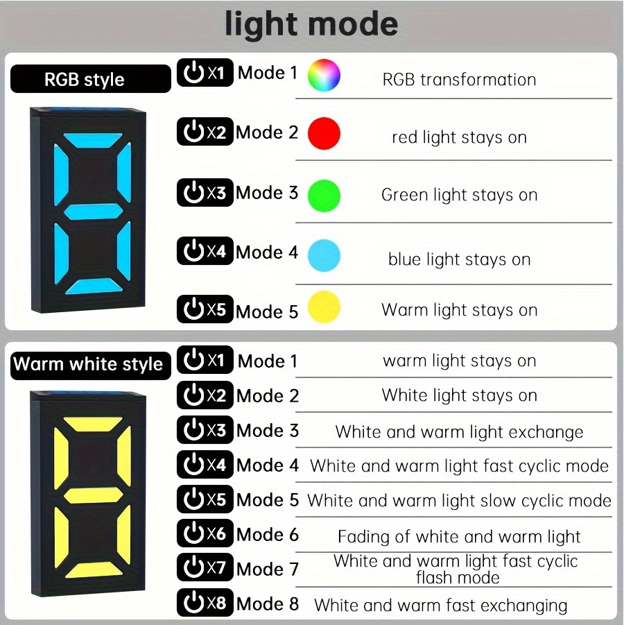 【RGB&Warm white style】--This product has two styles: RGB and warm white. Each style also has a variety of working modes. You can use accessories to make numbers 0-9 and letters a, C, e, F, h, l, P, u and so on