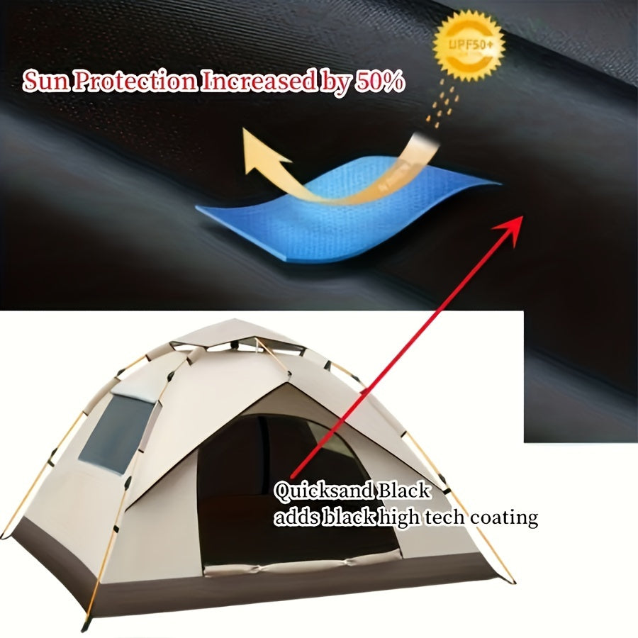 3-4 Person Pop-up Camping Tent - Automatic Instant Shelter, Waterproof & UV Guard, Mosquito-Free, Well-Ventilated, Quicksand Golden, Ultra-Portable with Carry Bag