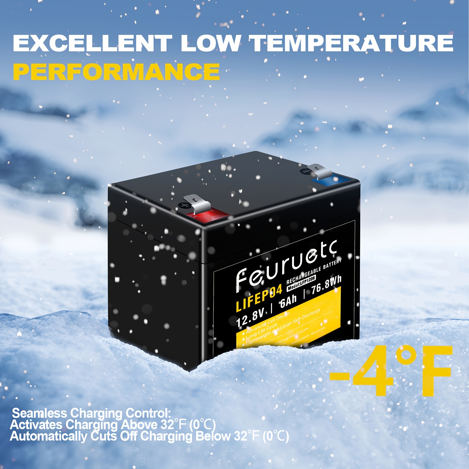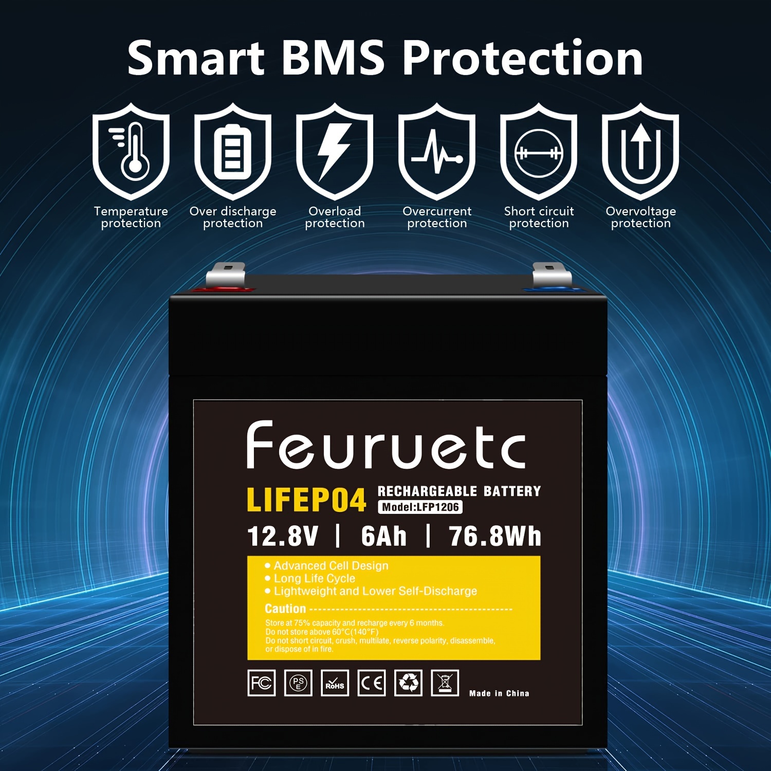 3000+ Cycle 12V 6Ah Rechargeable LiFePO4 Battery - Maintenance-Free, Built-in BMS, High-Capacity Power Source - Perfect for Camping, Fish Finders, Scooters, Security Systems, Ride-on Toys, and Backup UPS Applications