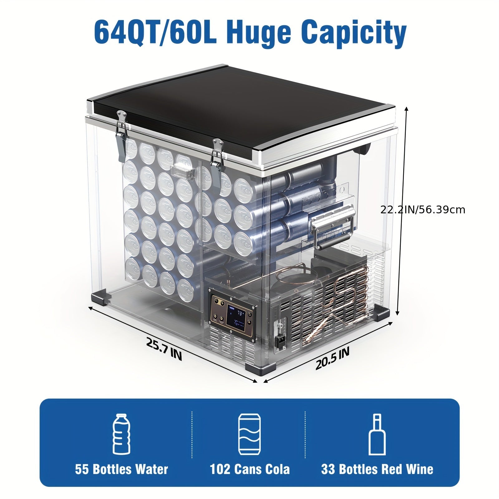 BODEGACOOLER 12 Volt Car Refrigerator, Protable Freezer APP Control, 64Quart Car Fridge, Electric Cooler 12/24V DC 110-240V AC For Outdoor, Vehicles, Camping, Travel, RV, Home Use