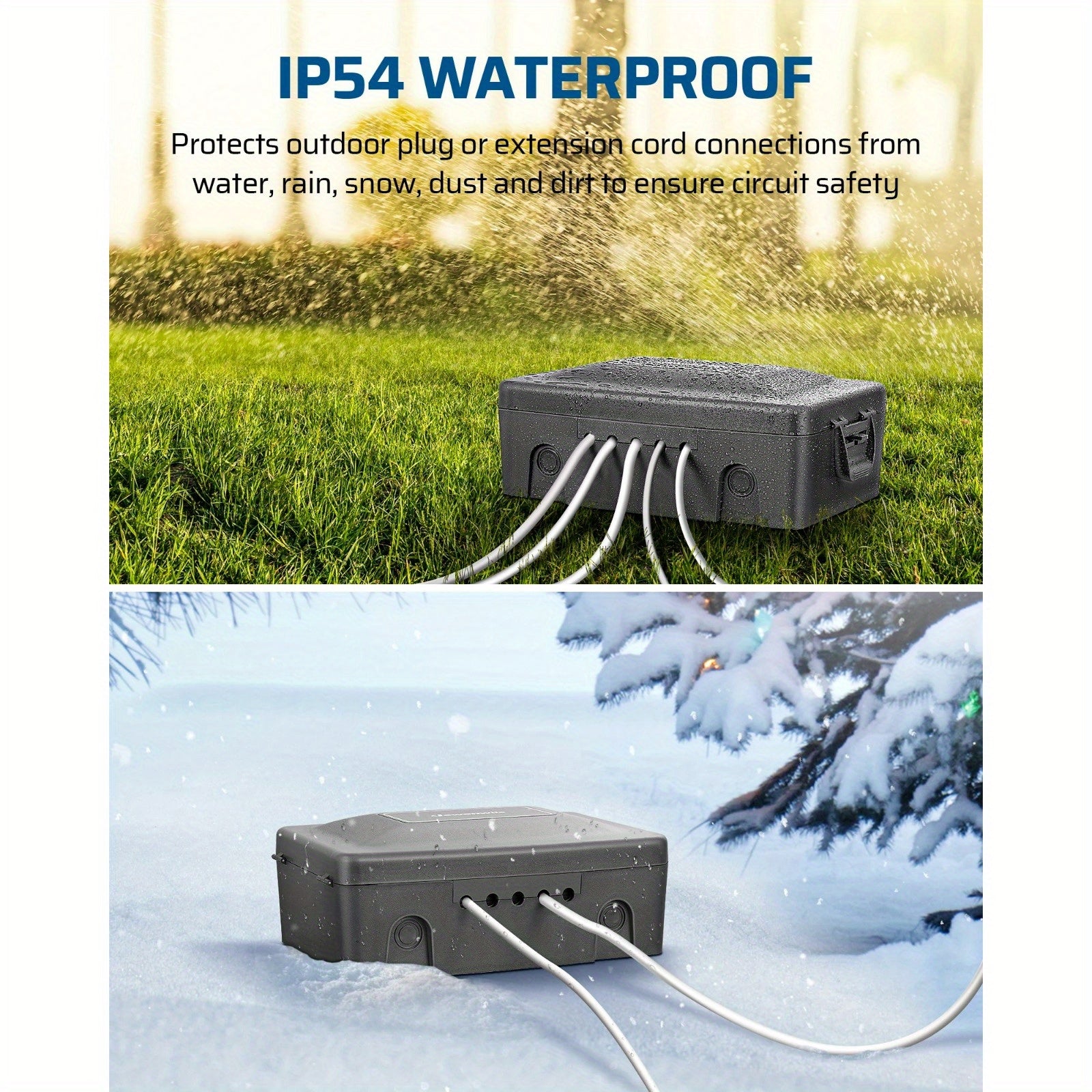 Convenient Design: Securely mount this connection box with 4 direct mounting holes and 2 keyhole mounting slots. Equipped with a large latch for locking, it ensures the safety of your devices by preventing loss and accidental opening. Perfect for outdoor use with a wide range of appliances including pool pumps, timers, pet heaters, holiday and landscape lighting, power tools, and garden tools.