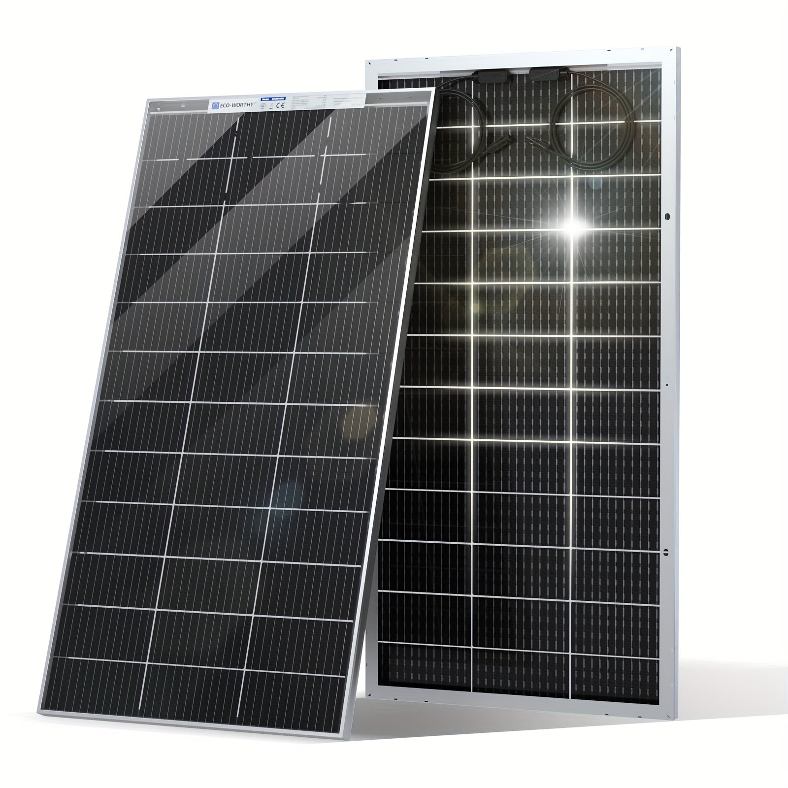 ECO-WORTHY 2 Pack 195 Watt 12 Volt Bifacial Solar Panel Monocrystalline Double-Sided Power Generation Rigid High-Efficiency PV Module Power Charger For RV, Sunsheds, Canopies, Farms, Home And Off-Grid