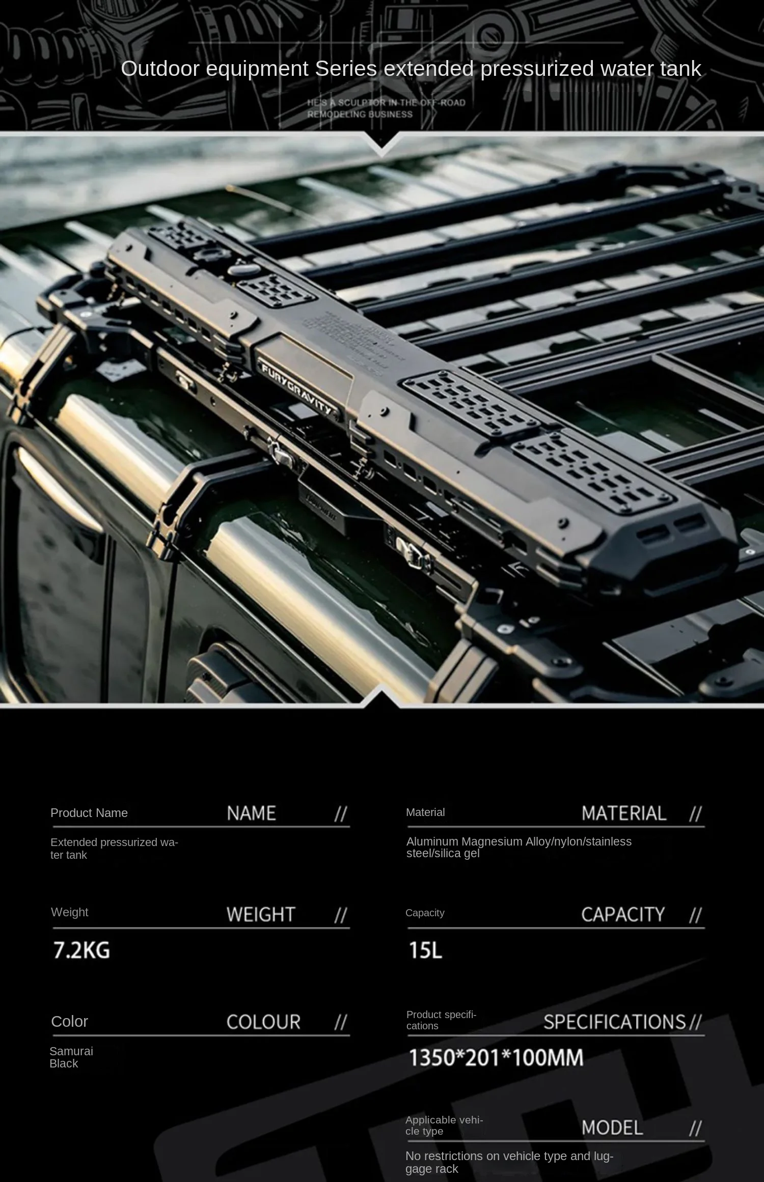 Expand Pressurized Roof Storage Tank Outdoor Car Camping Self-Driving Tour