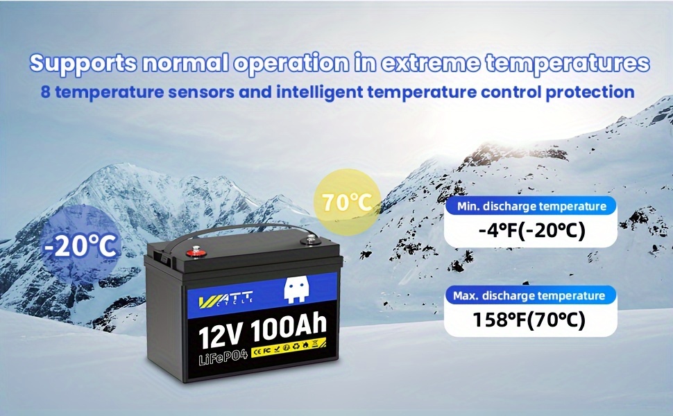 4.Low Temperature Protection: Designed to withstand extreme temperatures, our battery can operate in conditions as low as -4℉ (-20℃) and as high as 158℉ (70℃). It adapts seamlessly to various climate environments.