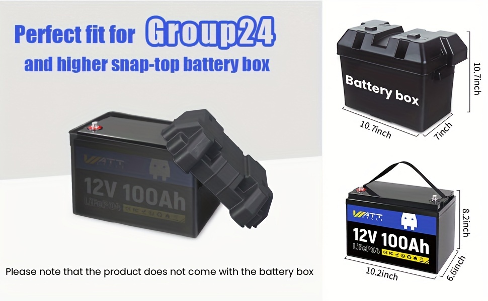 6.Perfect Fit: Our 100Ah LiFePO4 battery is thoughtfully designed to seamlessly fit the Group-24 battery box, eliminating the need for purchasing a larger box.