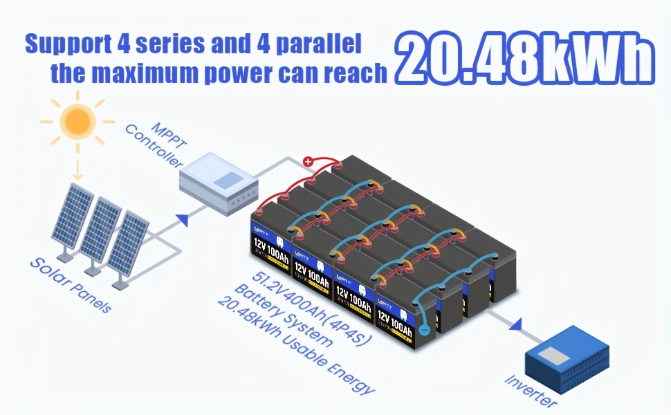 5.Series or Parallel Connection: You can easily connect up to 4 batteries in series or 4 battery packs in parallel, providing a remarkable capacity of up to 20.48kWh.