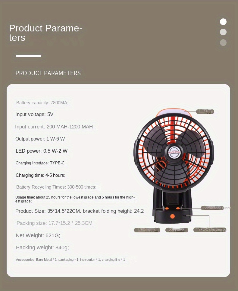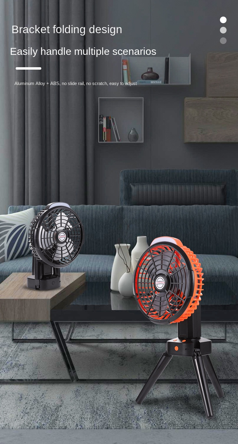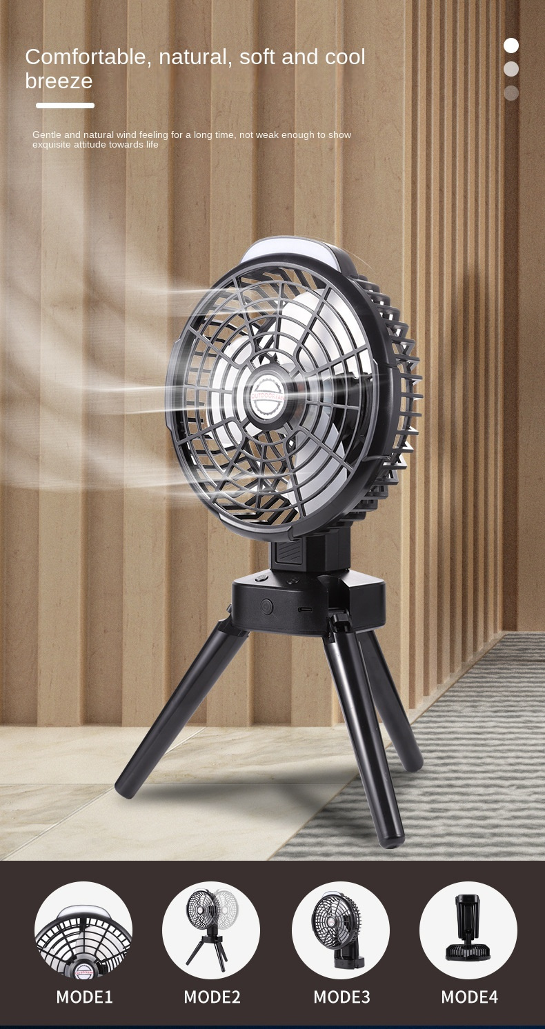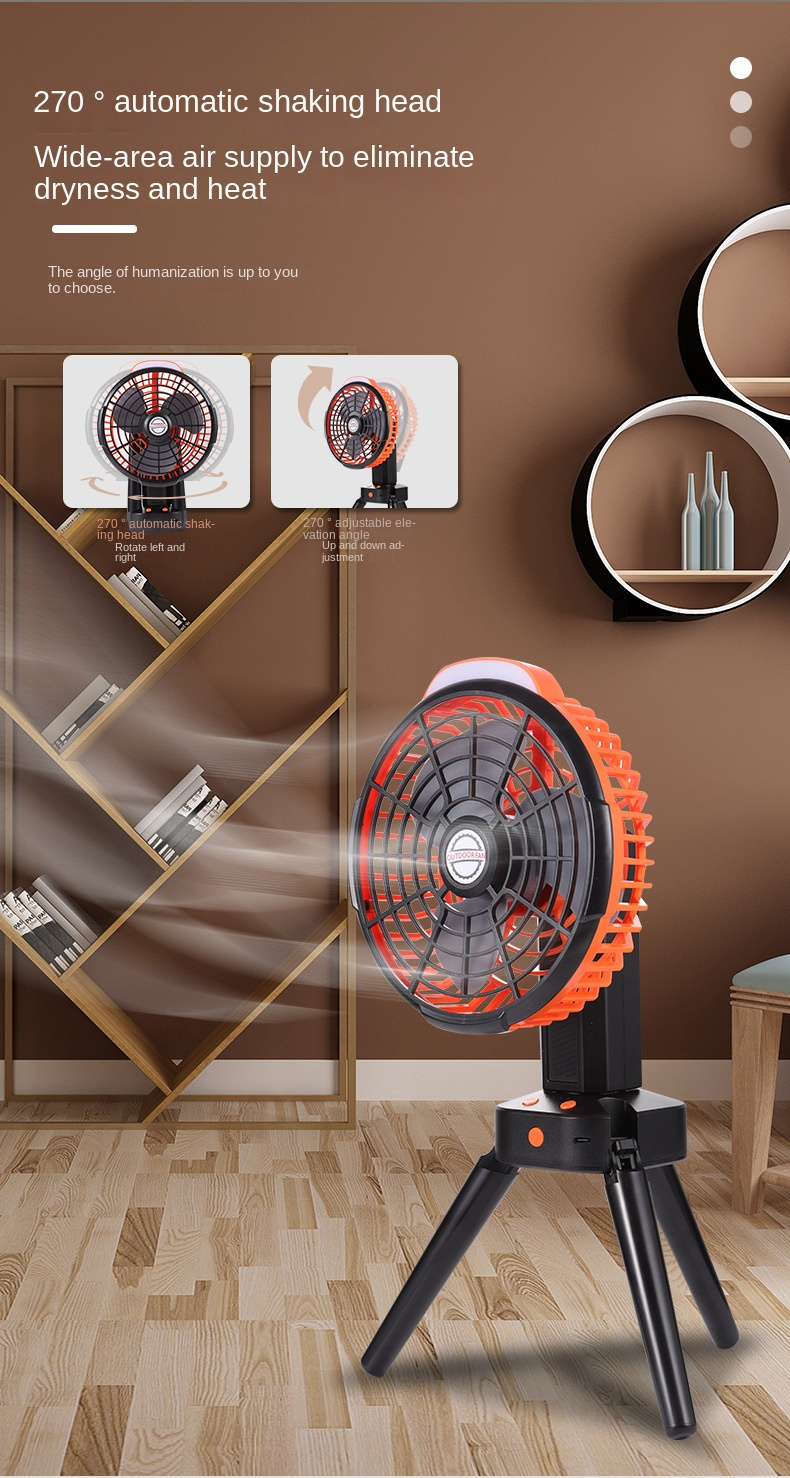 Outdoor Camping Fan Multi functional Tripod LED Light Tent Shake Head Fan USB Charging Fan