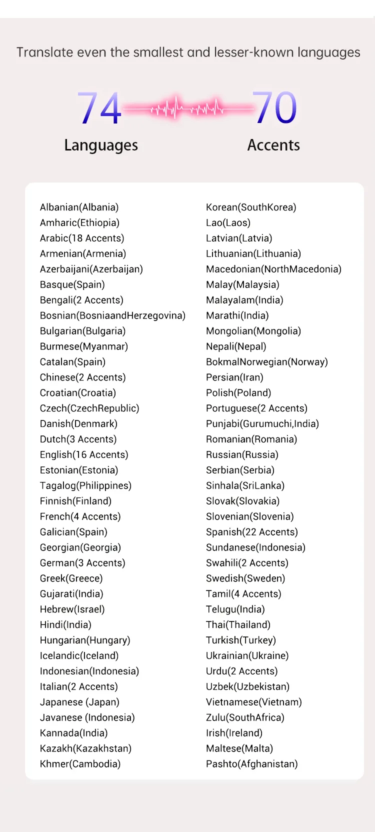 Online translation: 74 languages recognition