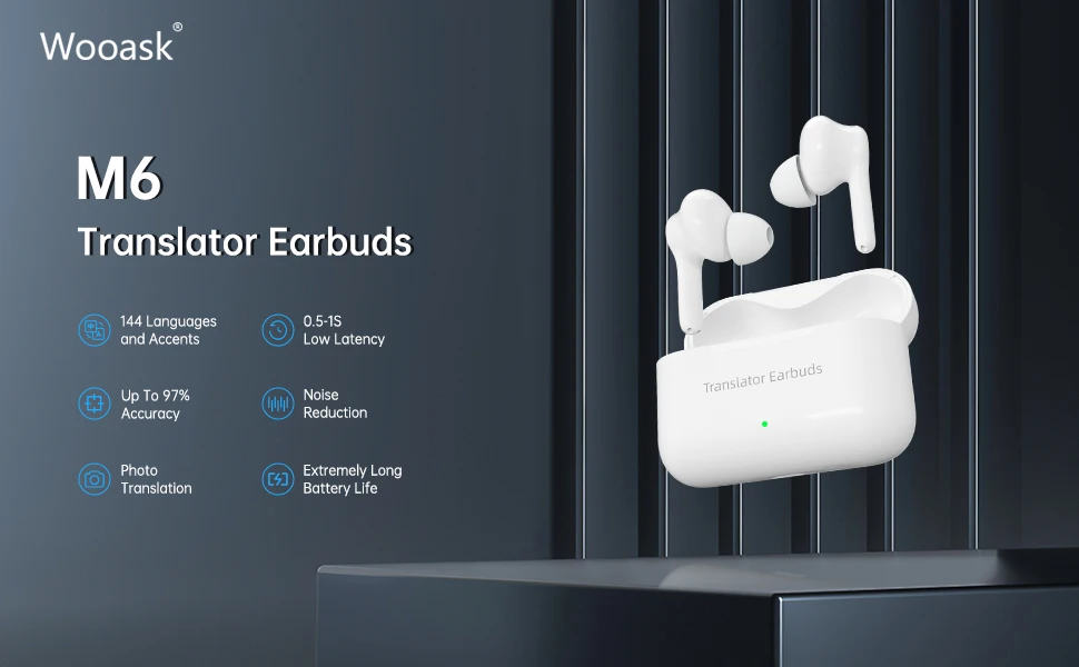 Wooask M6 Instant Voice Offline Translator Earbuds Real-time Language Translation Device Wireless Bluetooth Headset for Travel